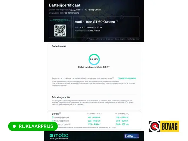 Voertuiggegevens van deze Audi e-tron GT