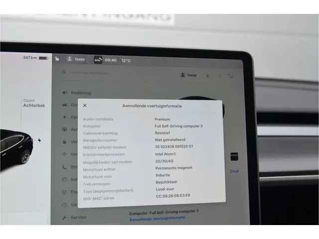 Voertuiggegevens van deze Tesla Model 3