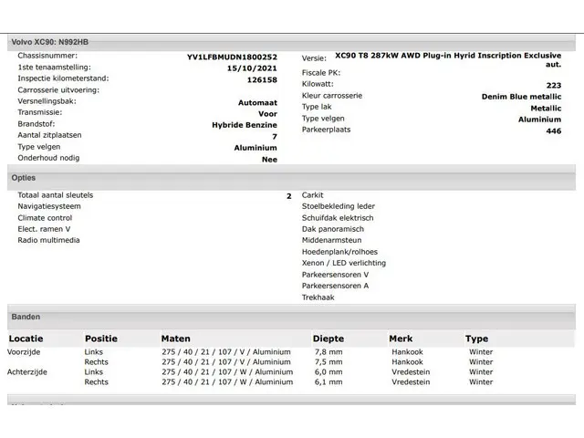Voertuiggegevens van deze Volvo XC90